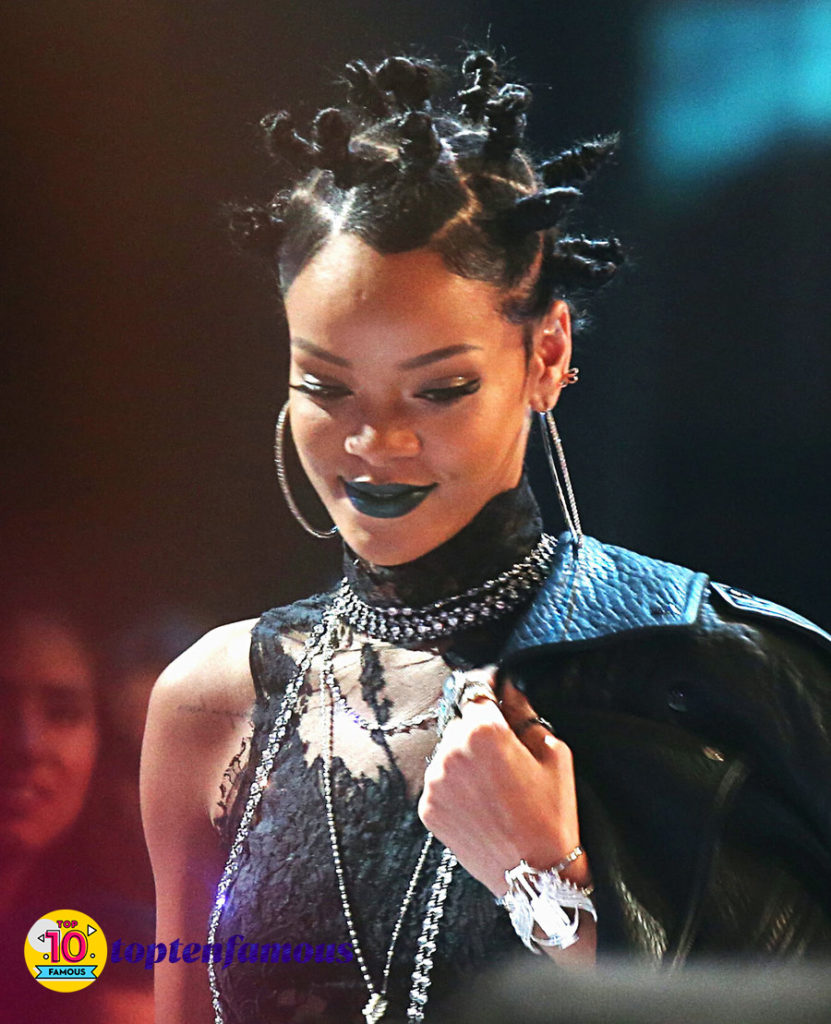 It only takes a long time for braids but every time Rihanna has to choose a unique style like this. Although having a hairstyle and dark lip color, Rihanna still stands out at the iHeartRadio Awards 2014. Up to now, there are still a few celebrities who have applied this hairstyle of female artists.